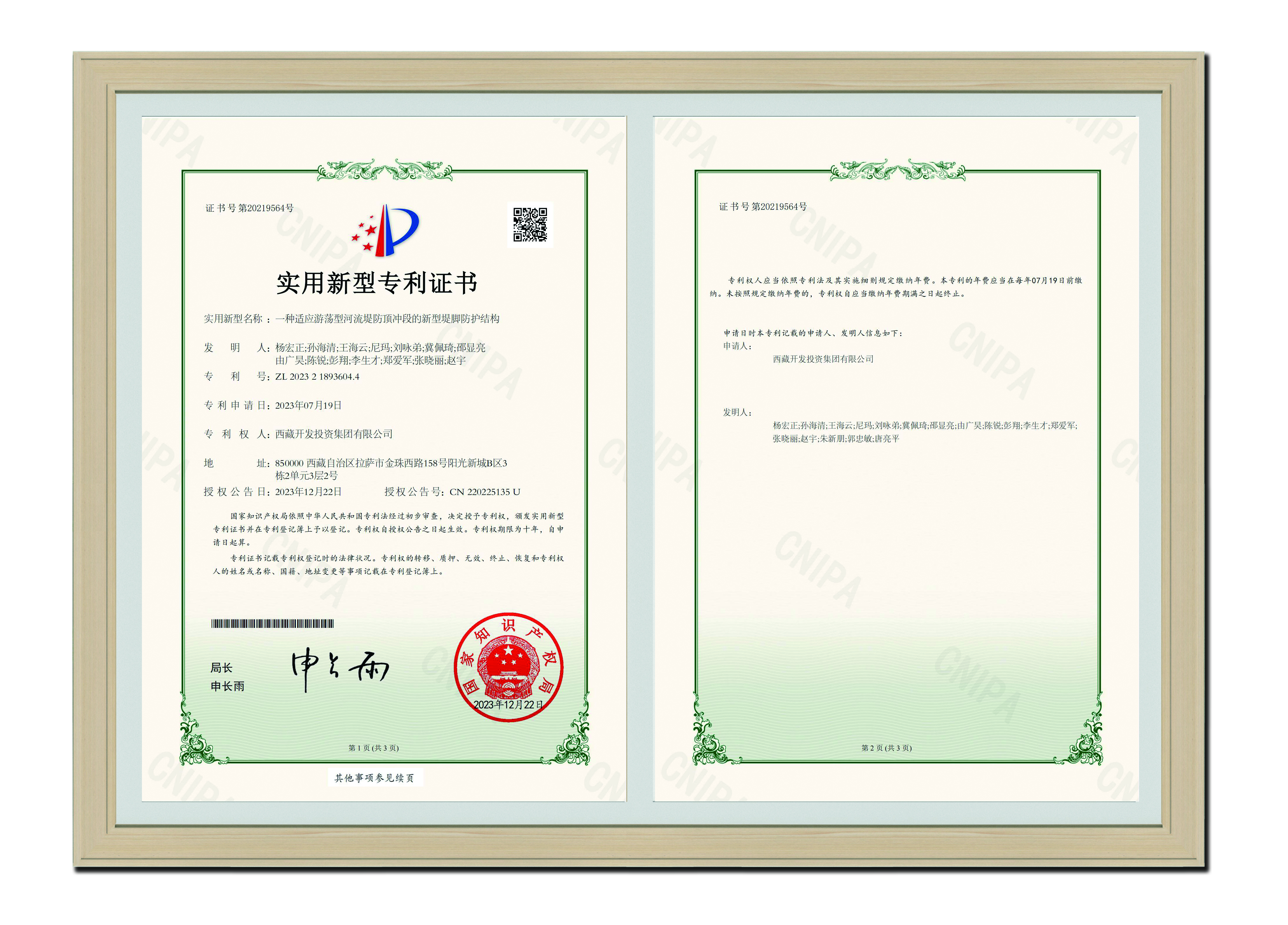 2023年12月22日 一種適應(yīng)游蕩型河流堤防頂沖段的新型堤腳防護(hù)結(jié)構(gòu)-實(shí)用新型專(zhuān)利證書(shū)