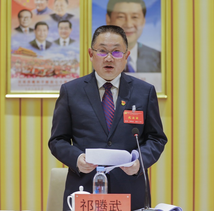 在熱烈的掌聲中,祁騰武向大會作報告。報告共分五個部分:一、工作回顧;二、當前形勢和任務;三、今后工作指導思想和發(fā)展目標;四、當前和今后一段時間的重點工作;五、全面加強黨的建設(shè)。