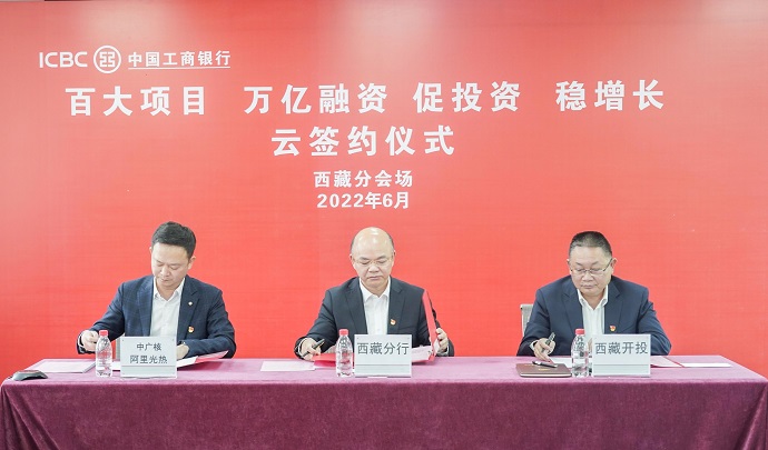 為深入貫徹黨中央“疫情要防住、經(jīng)濟(jì)要穩(wěn)住、發(fā)展要安全”重要決策部署,提升助力經(jīng)濟(jì)穩(wěn)增長(zhǎng)服務(wù)水平,6月9日下午,中國(guó)工商銀行總行舉行了“百大項(xiàng)目 萬(wàn)億融資 促投資 穩(wěn)增長(zhǎng)”云簽約儀式。西藏開(kāi)發(fā)投資集團(tuán)有限公司作為西藏自治區(qū)簽約重點(diǎn)客戶(hù)之一,在中國(guó)工商銀行西藏分會(huì)場(chǎng)簽訂清潔能源項(xiàng)目在“十四五”期間提供不超過(guò)100億元等值人民幣意向性融資額度合作協(xié)議。