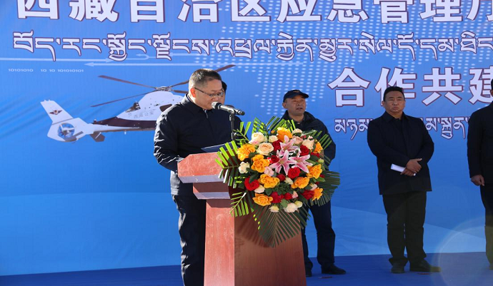 祁騰武代表西藏民航投,對各位領(lǐng)導(dǎo)、嘉賓的到來表示衷心感謝和誠摯歡迎。他表示,西藏航空應(yīng)急救援基地的建設(shè)和揭牌,是貫徹落實習(xí)近平總書記關(guān)于西藏工作和應(yīng)急救援體系建設(shè)重要指示批示精神,推動自治區(qū)黨委第十一次、第十四次專題會議精神落實落地的重要舉措,為推動我區(qū)不斷健全完善“統(tǒng)一指揮、上下聯(lián)動、空地同、快速反應(yīng)”應(yīng)急救援機制和“立體式、全天候、全災(zāi)種、高水平”綜合應(yīng)急救援體系邁出了堅實的一步。期待民航投與自治區(qū)應(yīng)急廳的戰(zhàn)略合作從“心”出發(fā),向新而行,不斷開創(chuàng)新的局面,交出滿意合格答卷。