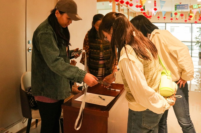 活動(dòng)開始前,員工及家屬陸陸續(xù)續(xù)開始簽到入場(chǎng)。在簽到處的旁邊還設(shè)置了打卡區(qū),員工及家屬紛紛在此打卡留念。