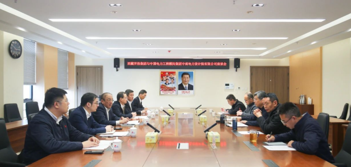 4月15日,集團黨委副書記、副董事長、總經理 剛在拉薩會見來訪的中國電力工程顧問集團中南電力設計院黨委書記、董事長陳新軍一行,就深化多領域合作進行座談交流。集團黨委委員、副總經理尼瑪,中南院黨委委員、副總經理殷幼軍等參加會談。