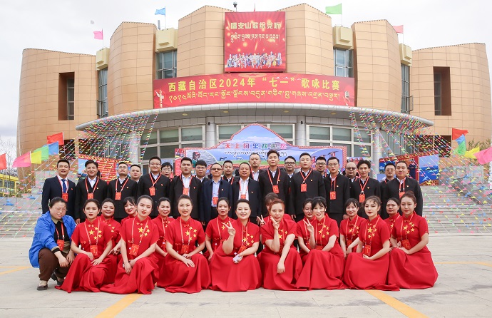 6月28日晚,西藏阿里群眾文化藝術(shù)館人潮涌動,歌聲飛揚。由自治區(qū)黨委宣傳部主辦的“西藏自治區(qū)2024年迎‘七一’暨‘唱支山歌給黨聽’紅色歌曲歌詠比賽決賽正式拉開帷幕,共有來自全區(qū)不同單位行業(yè)的15支代表隊伍同臺競技,共同獻(xiàn)禮黨的百年華誕。當(dāng)晚21時,開幕式準(zhǔn)時開始。在多彩燈光的映襯下,象雄古韻·天上阿里的原生態(tài)和《再唱山歌給黨聽》《沒有共產(chǎn)黨就沒有新中國》《我和我的祖國》等一曲曲耳熟能詳?shù)募t色歌曲交相輝映、相繼登場,將全區(qū)各族兒女和廣大黨員干部職工愛黨愛國愛藏的情懷淋漓盡致展現(xiàn)。