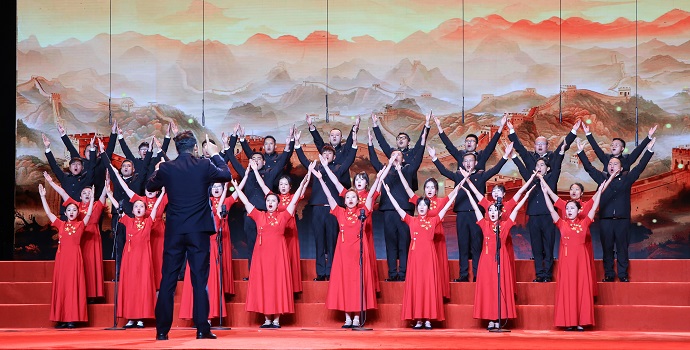 當(dāng)晚的現(xiàn)場,集團(tuán)公司合唱隊的演唱充滿了激情與力量,以激昂的節(jié)奏和磅礴的氣勢,深情謳歌了黨的豐功偉績,唱出了家國情懷,將對偉大祖國的深情祝福和前進(jìn)道路上的奮斗精神融入歌聲之中,展現(xiàn)了國企職工不忘初心、闊步前行的昂揚姿態(tài),贏得了臺下觀眾熱烈的掌聲與贊譽。