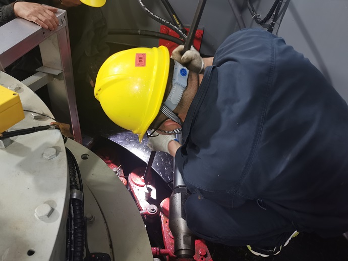 藏中電網(wǎng)異步聯(lián)網(wǎng)運行期間,雷雨季節(jié)易受雷擊容易跳閘。根據(jù)《電網(wǎng)運行風(fēng)險預(yù)警通知單》要求,金橋水電站及時調(diào)整運行方式。9月17日至18日,利用機組停機時間,公司組織對1號、2號機組開展過流部件檢查工作,及時對蝸殼異物進行清理和更換剪斷銷,全力保障機組安全穩(wěn)定運行。