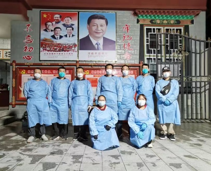 疫情就是命令。經(jīng)集團公司黨委決策,委派副總經(jīng)理尼瑪帶領(lǐng)志愿服務(wù)隊以時不我待的緊迫感和高度的責(zé)任感,火速趕往城關(guān)區(qū)嘎瑪貢桑街道俄杰塘社區(qū),展開他們的“下沉”抗疫行動。
