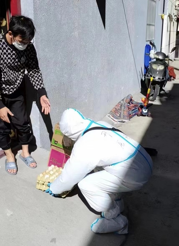 在下沉服務(wù)中,尼瑪?shù)弥鐓^(qū)里一位名為次仁卓瑪?shù)呐⑸顕乐乩щy,立刻前往幫助。據(jù)了解,次仁卓瑪來自林芝市工布江達縣,因疫情暫時滯留在拉薩。她的母親和姑姑因病在拉薩市人民醫(yī)院就醫(yī),年邁的奶奶隨行照顧。父親和哥哥也去了方艙,留下她跟一位親戚居家隔離。這些日子,靠著政府免費發(fā)放的大米、糌粑維持生活。生活的窘迫,讓女孩幾度哽咽。尼瑪安慰鼓勵道:“孩子,困難是暫時的,你作為家里唯一的大學(xué)生,不能被打倒,你要堅強起來。我們是人民政府派來的志愿者,我們會想辦法解決困難,孩子要笑起來,相信勝利很快就能到來!”隨后,尼瑪和楊俊生為其愛心捐款1000元,劉青松為其送去蔬菜、雞蛋等生活物資。寬心的話語、暖心的行動,讓這個堅強的女孩,露出了格?;ò銧N爛的笑容。
