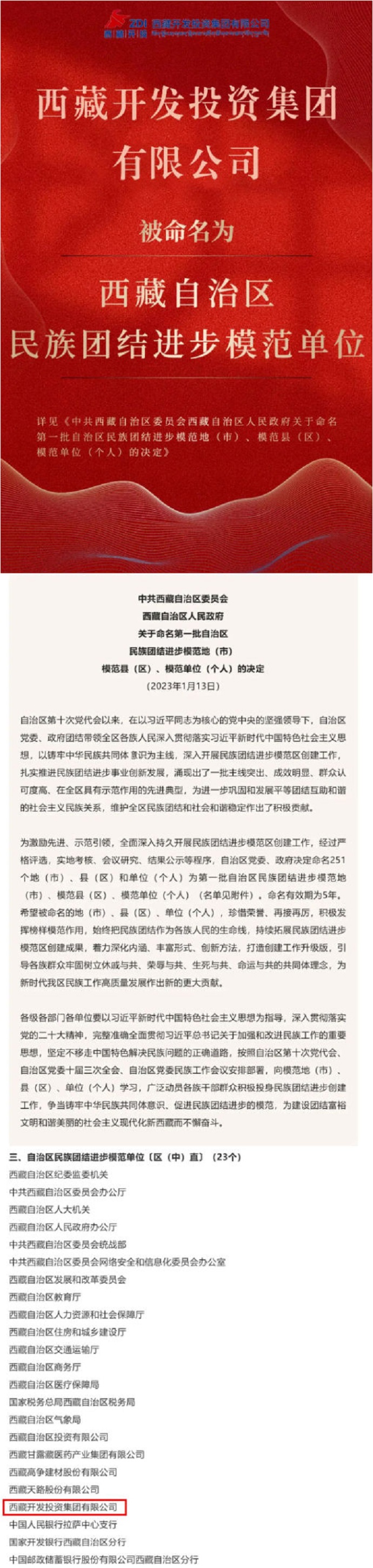 捷報(bào)傳來 _ 西藏開投集團(tuán)被命名為“西藏自治區(qū)民族團(tuán)結(jié)進(jìn)步模范單位”