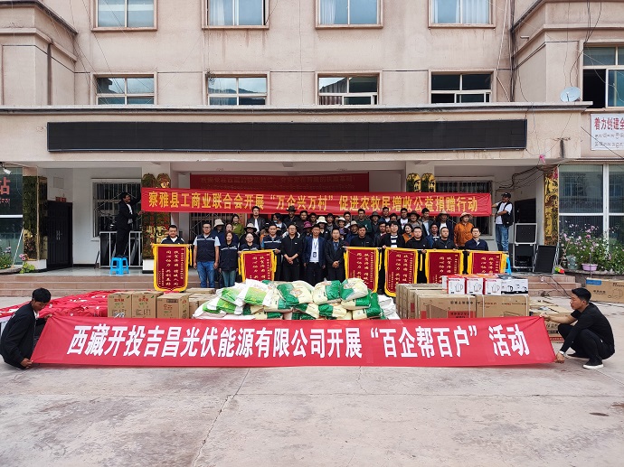 為深入貫徹落實(shí)市委二屆九次全會(huì)精神,落實(shí)《關(guān)于持續(xù)增加農(nóng)牧民收入的十條措施》舉措,9月21日,西藏開投吉昌光伏能源有限公司組織開展“百企幫百戶”結(jié)對(duì)幫扶活動(dòng)。察雅縣工商聯(lián)主席鄧增旺扎、西藏開投吉昌光伏能源有限公司執(zhí)行董事李玲出席活動(dòng)。