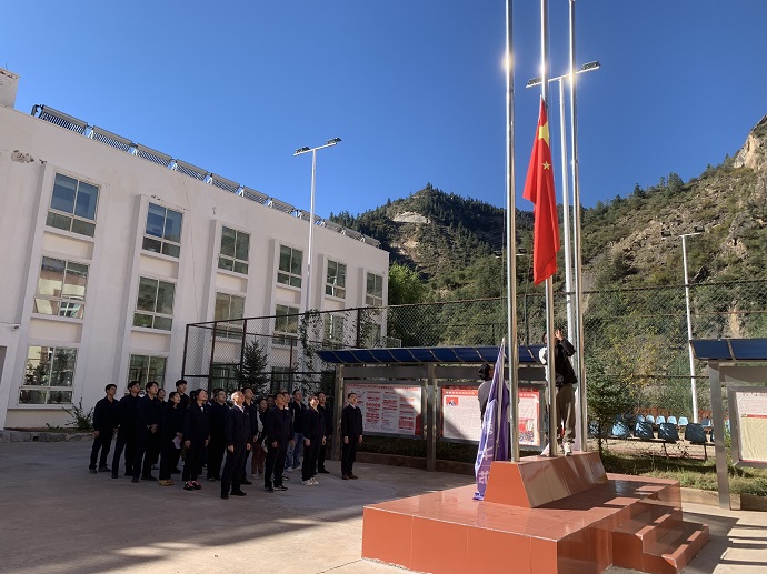 為深入學(xué)習(xí)貫徹黨的二十大精神,深刻學(xué)習(xí)領(lǐng)會(huì)習(xí)近平新時(shí)代中國特色社會(huì)主義思想,引領(lǐng)廣大干部職工賡續(xù)紅色基因,厚植愛國主義情懷。10月1日上午十點(diǎn),果多水電公司全體干部職工整齊列隊(duì)、精神抖擻,舉行莊嚴(yán)的“喜迎國慶”升國旗儀式,熱烈慶祝祖國華誕74周年。