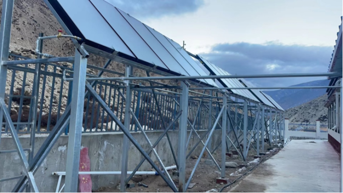 日喀則市定日縣曲當鄉(xiāng)德吉村、優(yōu)帕村、嚴曲村位于珠穆朗瑪峰自然保護區(qū)核心區(qū),均為定日縣偏遠邊境鄉(xiāng)村。項目供暖總面積為593.39m2,包括太陽能集熱器系統(tǒng)、輔助熱源(空氣源熱泵),儲熱系統(tǒng)、末端設(shè)施,光伏發(fā)電系統(tǒng),建筑節(jié)能改造等內(nèi)容。在日喀則市發(fā)改委的領(lǐng)導(dǎo)下,南亞公司(西藏開投下屬二級公司)以人為本、科學(xué)管理、精心組織,克服設(shè)備運輸艱難、人員組織困難、施工機械短缺、項目工期緊張等種種困難,如期實現(xiàn)了項目投產(chǎn)。同時,為評估和提升項目效能,配套了PLC自控柜,對供暖數(shù)據(jù)進行遠程收集及數(shù)據(jù)分析。在本項目運行一個采暖期后,將對項目的規(guī)模效益、財務(wù)效益、綜合效益進行綜合評價,并對清潔能源供暖方式替代傳統(tǒng)燃料的減碳效果進行科學(xué)分析,確保形成村居供暖工程可靠性好、性價比高、適宜推廣的決策方案,為全面復(fù)制推廣實施全區(qū)農(nóng)牧區(qū)清潔供暖供熱項目做出貢獻。