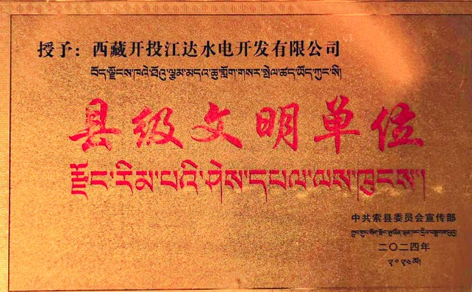 西藏開投江達水電開發(fā)有限公司獲評縣級文明單位