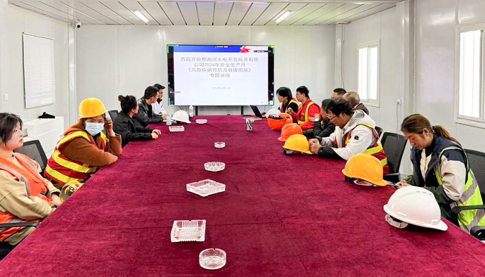 西藏開投安多縣土若125MW光伏+50MW光熱一體化項(xiàng)目施工現(xiàn)場處于青藏高原海拔4600米以上,含氧量較低,為讓項(xiàng)目各參建單位人員對高原病有一個(gè)正確的認(rèn)識,掌握常見高原病防治、高原衛(wèi)生與保健知識,消除對高原工作的緊張憂慮心理,養(yǎng)成良好的生活習(xí)慣,以最好的狀態(tài)投入工作,6月11日,那曲河水電公司組織監(jiān)理及總承包單位在施工現(xiàn)場營地開展高原病知識講座。