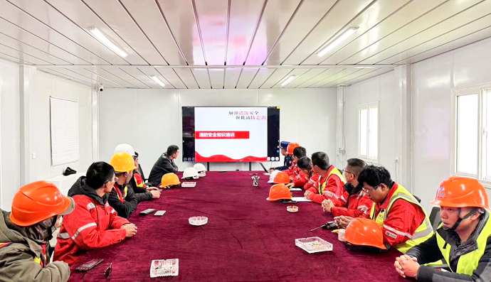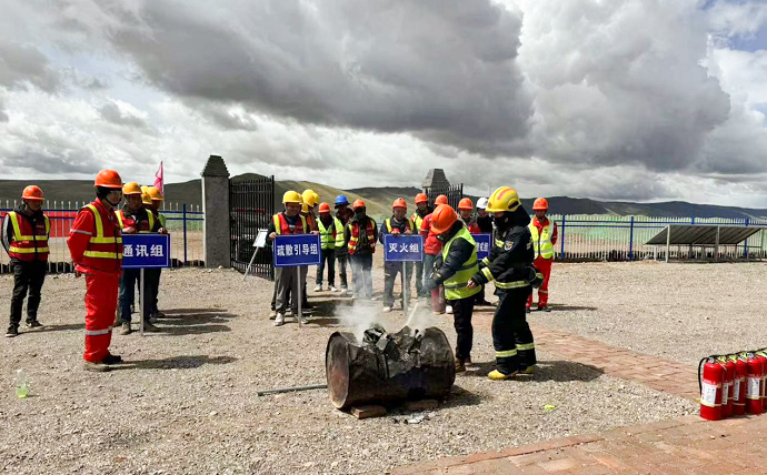 此次演習邀請了那曲市安多縣消防救援大隊防火參謀進行消防知識培訓(xùn)及實際操作教學。培訓(xùn)過程中,首先觀看了近年來多起施工現(xiàn)場火災(zāi)典型案例,并對案例進行了深刻剖析,明晰了火災(zāi)事故中相應(yīng)人員所承擔的法律責任,同時講解了預(yù)防、滅火和自救逃生方法。接著,消防隊通過以練代訓(xùn)的方式,讓參訓(xùn)人員上手實操,全面了解干粉滅火器的使用方法。