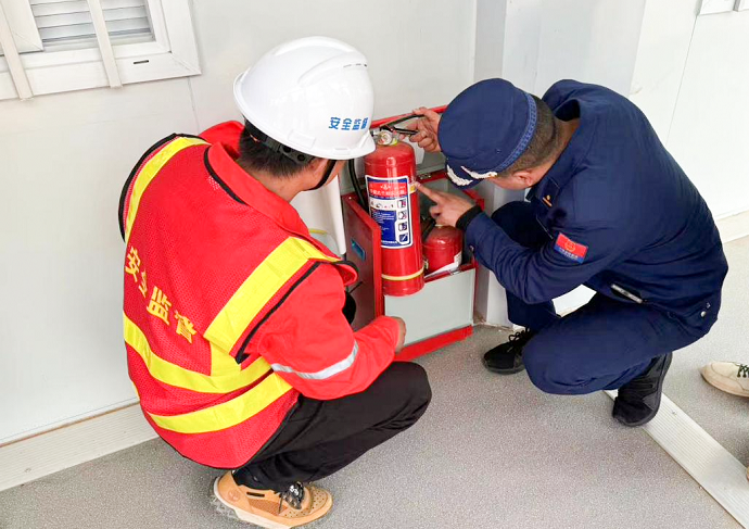 演練結(jié)束后,消防人員帶領(lǐng)項目管理人員對辦公區(qū)、宿舍、食堂等區(qū)域進行防火安全巡查,通過逐個檢查和詳細講解,進一步排除火災(zāi)安全隱患。