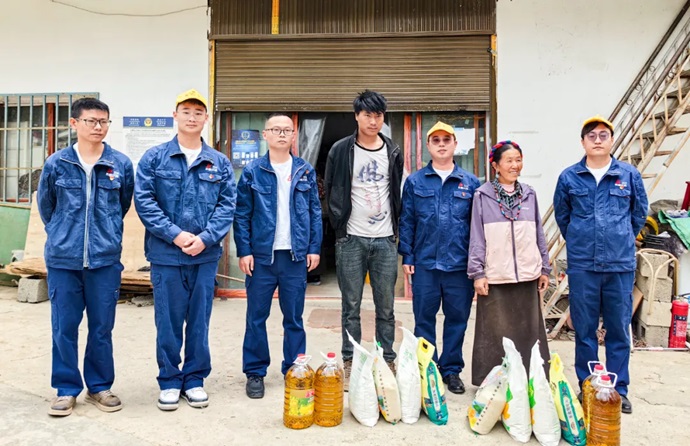 活動現(xiàn)場,覺巴黨支部同當?shù)卣浜?,為曲登鄉(xiāng)兩戶困難群眾送上大米、面粉、食用油等生活物資,詳細了解他們身體狀況、家庭情況,并鼓勵他們堅定信心、努力向上生活。