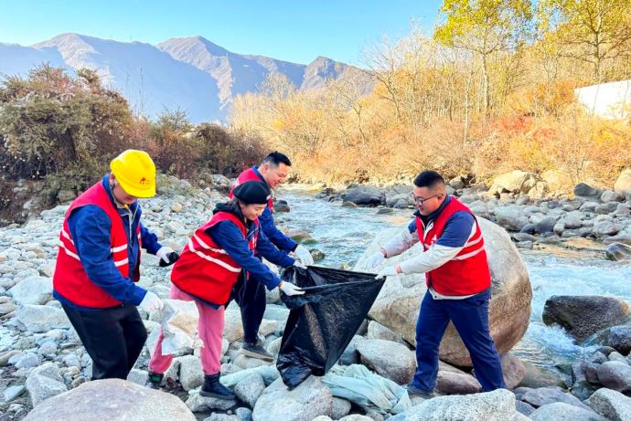 志愿者們在索朗溝積極開展垃圾清理工作,并為周邊群眾發(fā)放安全知識手冊,耐心講解用電安全及防災減災常識,用實際行動傳遞了水電人的愛心。
