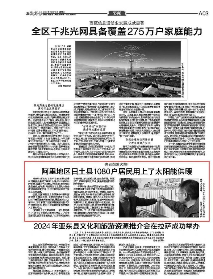 媒體報(bào)道丨告別煙熏火燎!日土縣1080戶居民用上了太陽能供暖
