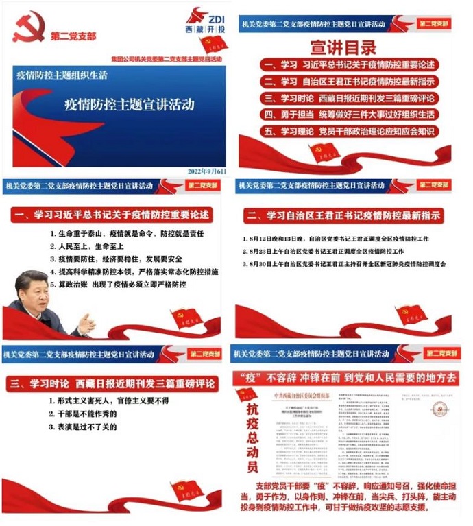 為貫徹落實(shí)區(qū)黨委和區(qū)政府國(guó)資委黨委近期工作部署、集團(tuán)公司黨委具體工作要求,結(jié)合疫情防控工作實(shí)際,9月6日下午,中共西藏開發(fā)投資集團(tuán)有限公司機(jī)關(guān)第二支部委員會(huì)組織全體黨員開展疫情防控主題黨日宣講活動(dòng)。受疫情影響,活動(dòng)以網(wǎng)絡(luò)視頻形式召開。集團(tuán)公司黨委委員、副總經(jīng)理、工會(huì)主席、機(jī)關(guān)黨委書記溫勇同志以普通黨員身份參加活動(dòng)。