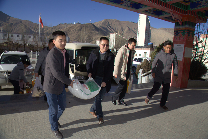 當(dāng)天的慰問(wèn)活動(dòng),西藏開(kāi)投集團(tuán)的黨員同志們還集體參觀(guān)了村委設(shè)施,并為村委貧困戶(hù)送上了米油等慰問(wèn)物資,同時(shí)預(yù)祝他們?cè)┛鞓?lè)!扎西德勒!