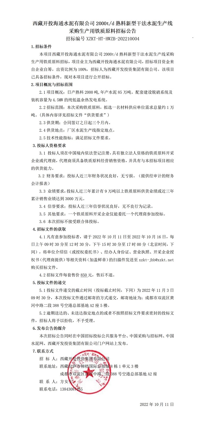 西藏開投海通水泥有限公司2000t/d熟料新型干法水泥生產(chǎn)線