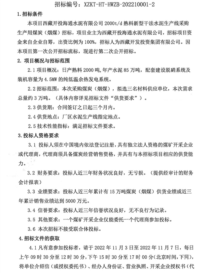 采購生產(chǎn)用煤炭(煙煤)二次招標(biāo)公告