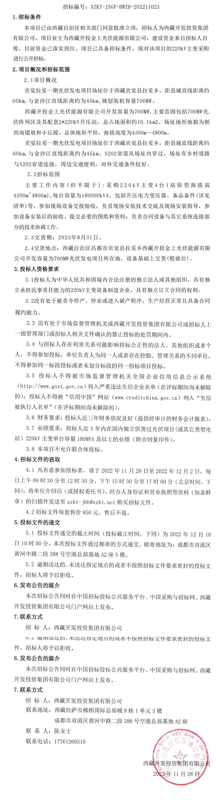 220kV主變采購招標(biāo)公告