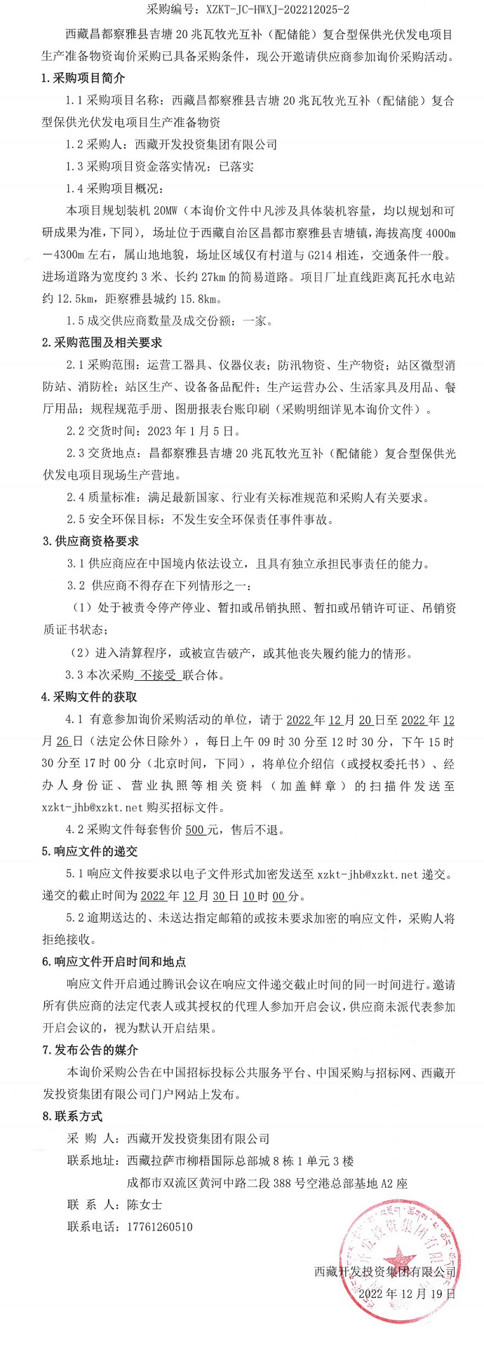 生產(chǎn)準(zhǔn)備物資詢價(jià)采購(gòu)二次公告