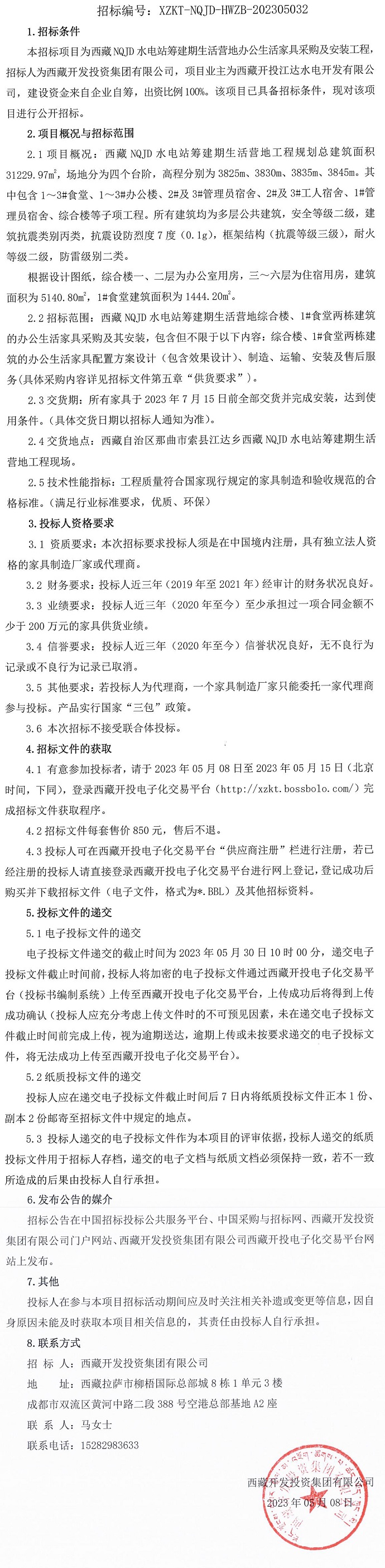 西藏NQJD水電站籌建期生活營地辦公生活家具采購及安裝工程招標(biāo)公告