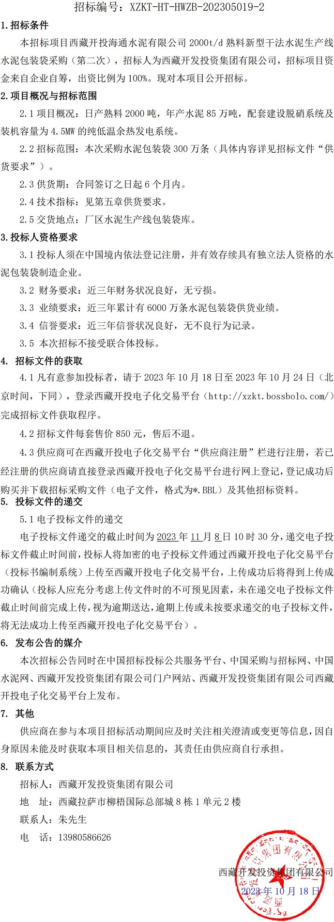 線水泥包裝袋采購(gòu)(第二次)招標(biāo)公告