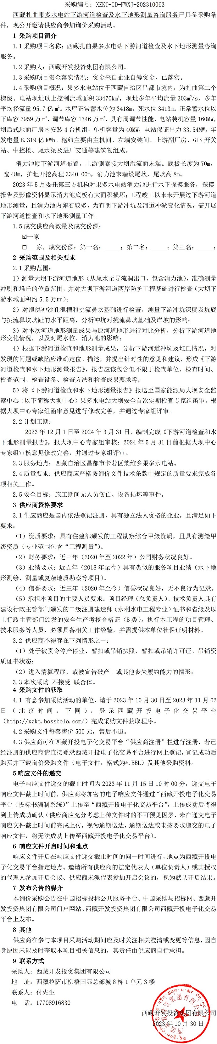 西藏扎曲果多水電站下游河道檢查及水下地形測(cè)量咨詢(xún)服務(wù)詢(xún)價(jià)采購(gòu)公告