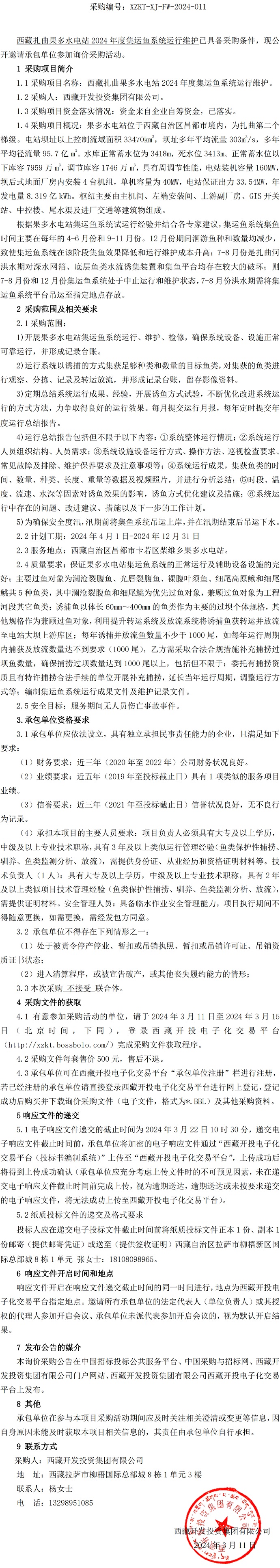 西藏扎曲果多水電站 2024 年度集運(yùn)魚系統(tǒng)運(yùn)行維護(hù)詢價(jià)采購(gòu)公告