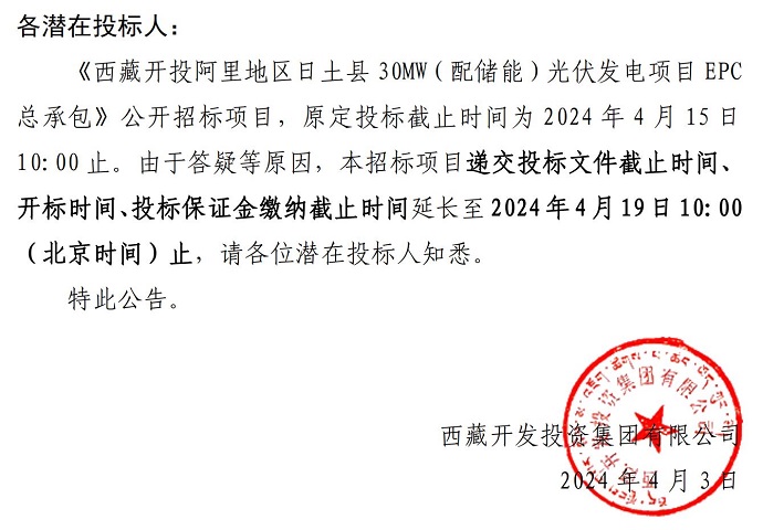 關(guān)于延長(zhǎng)《西藏開(kāi)投阿里地區(qū)日土縣30MW(配儲(chǔ)能)光伏發(fā)電