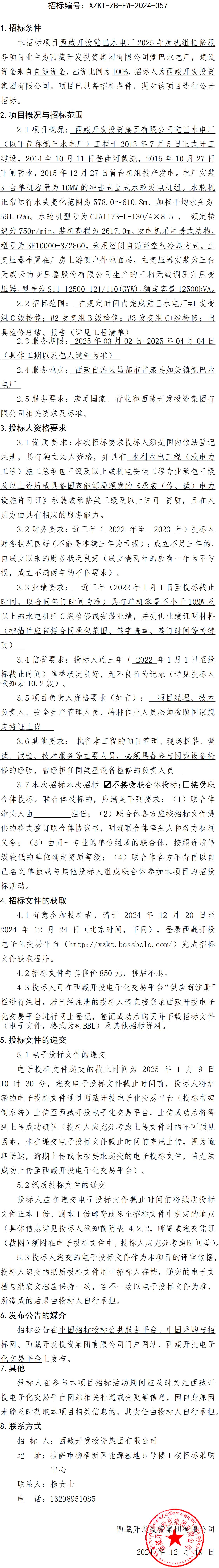 西藏開投覺巴水電廠 2025 年度機組檢修服務(wù)招標(biāo)公告