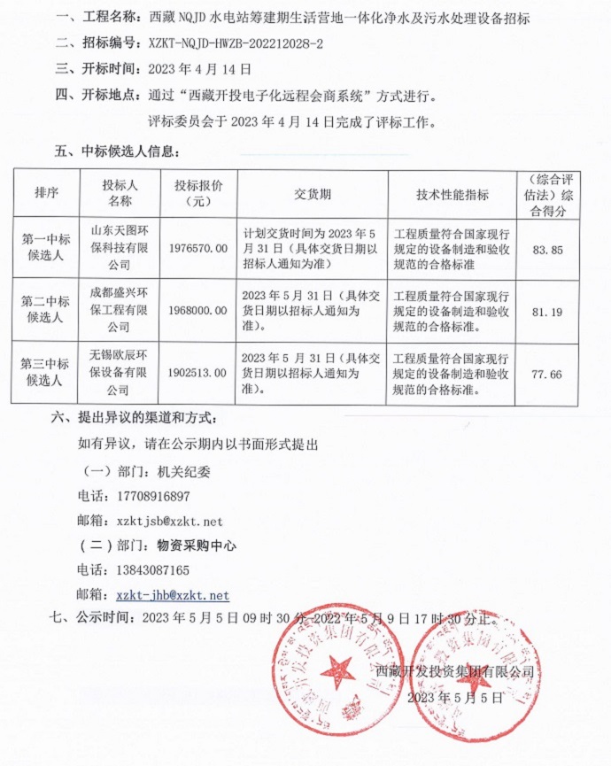 中標(biāo)候選人公示