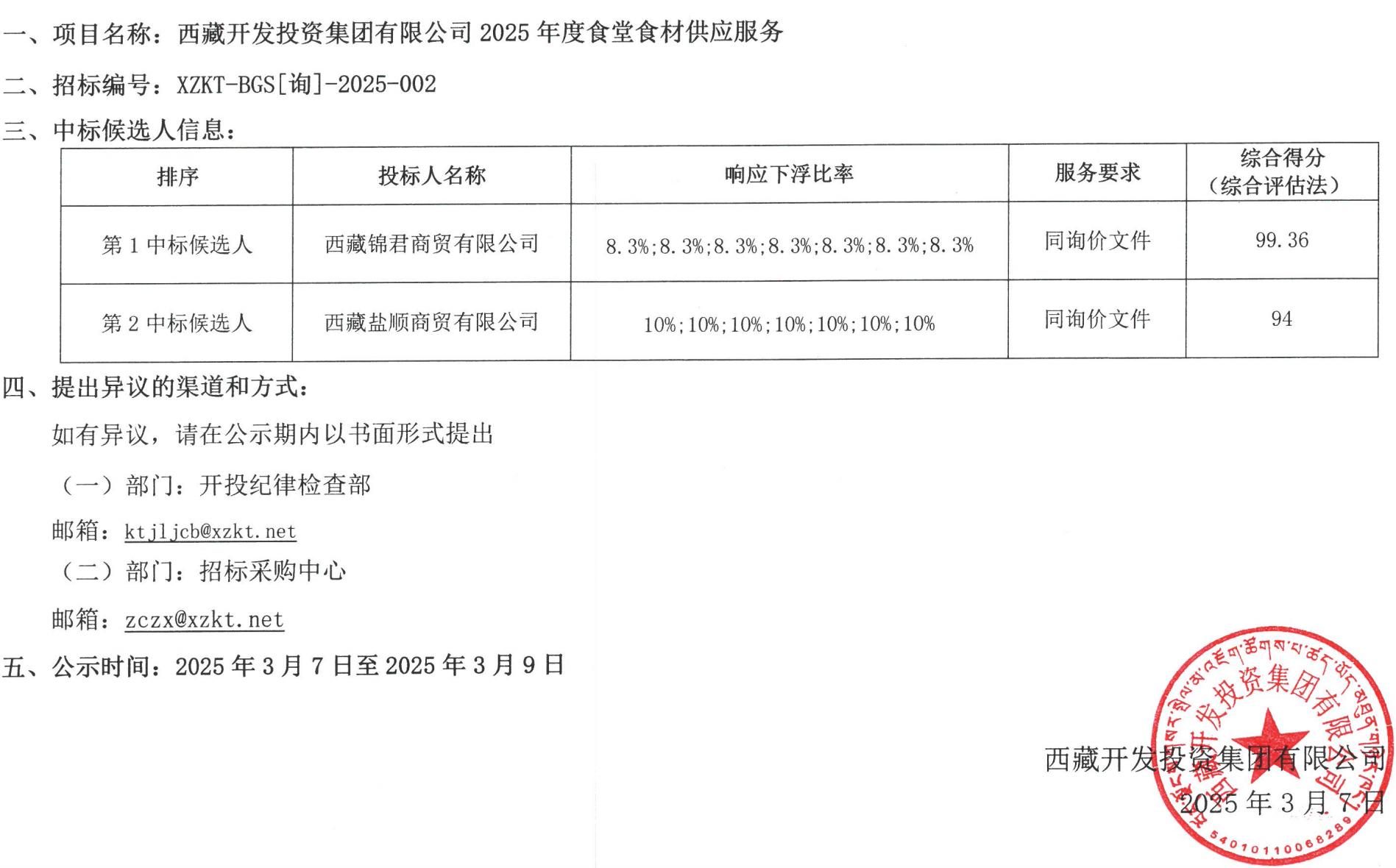 成交候選人公示