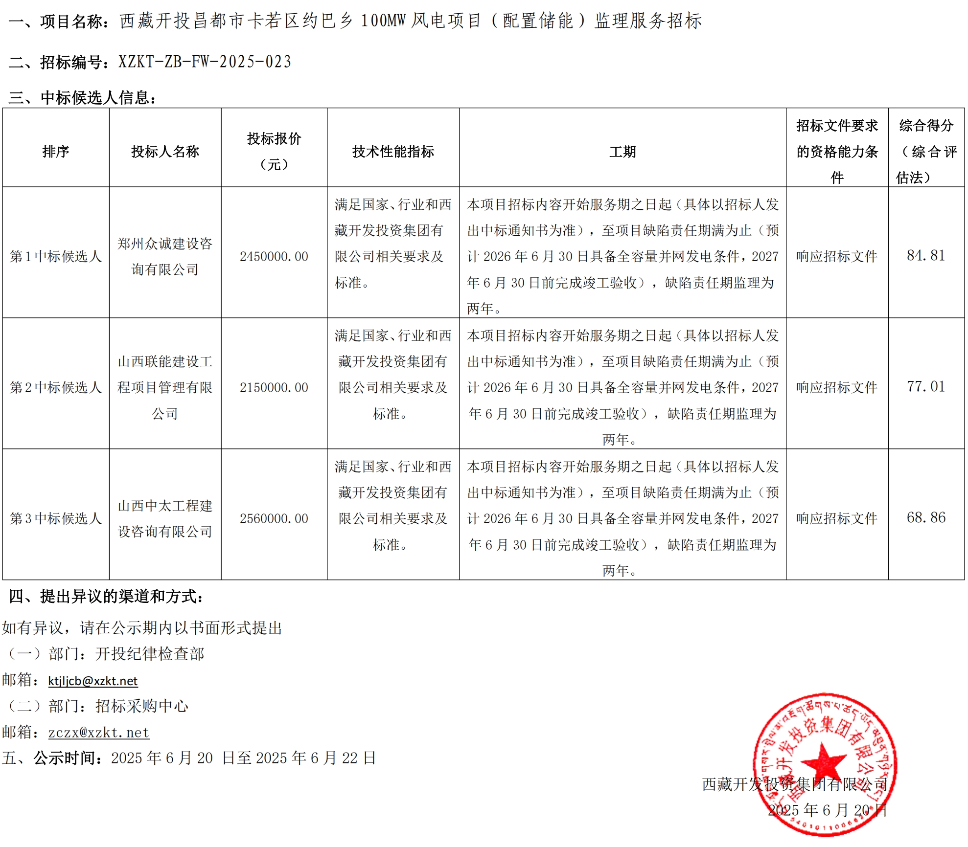 中標候選人公示